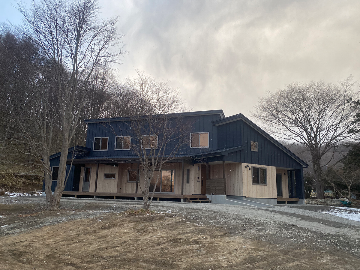 ウッドデッキには屋根も設けているので雪が乗らず耐久性を持たせている。