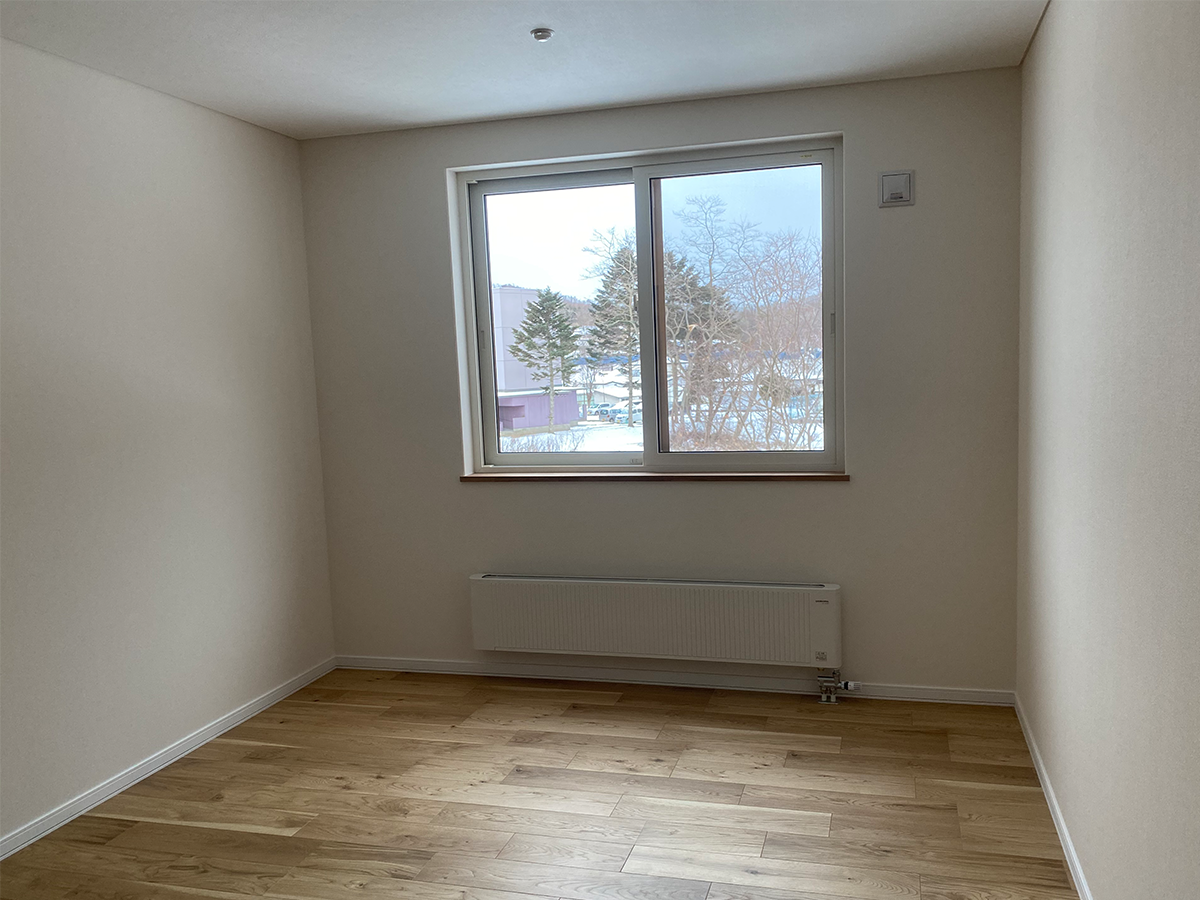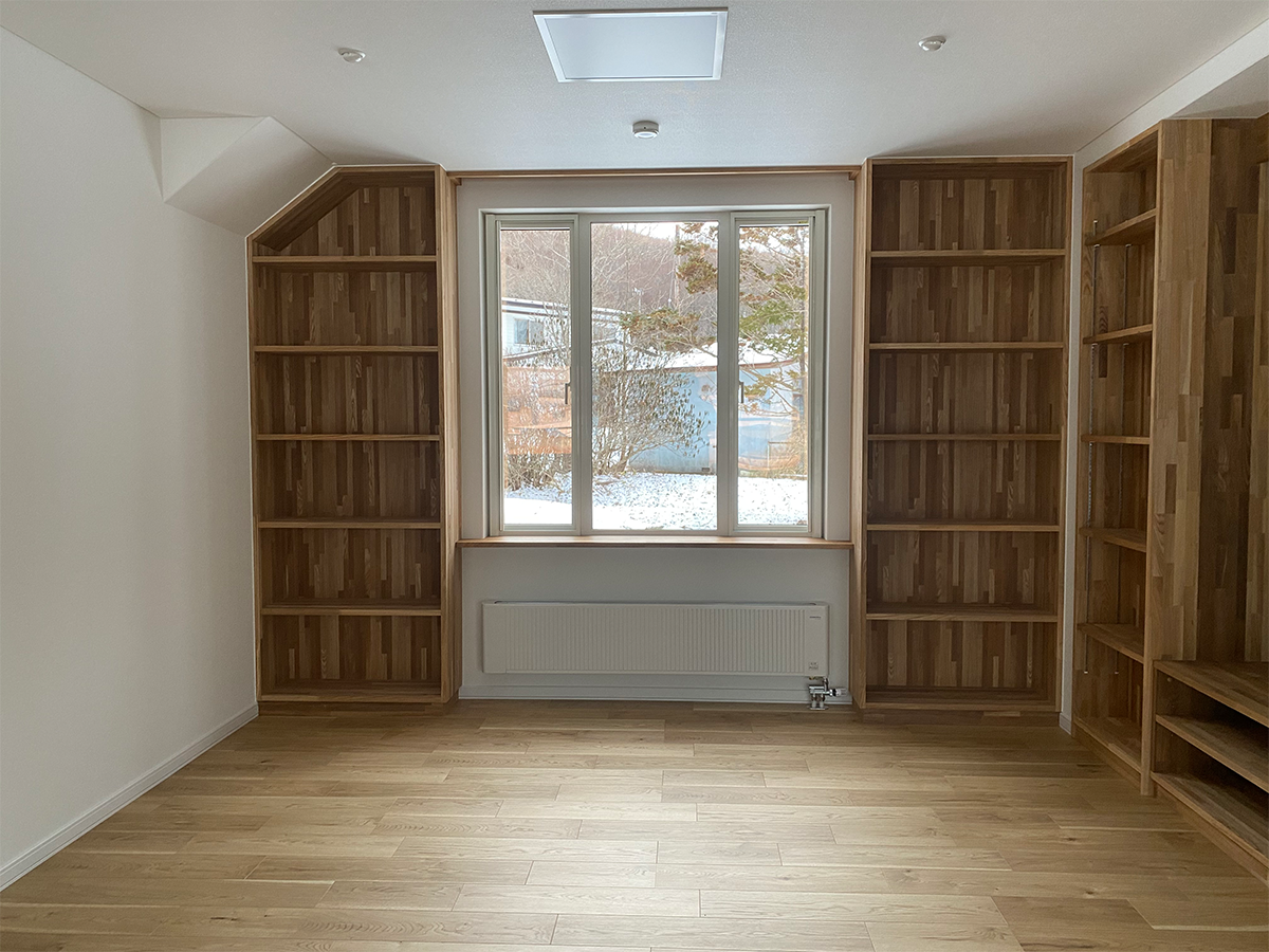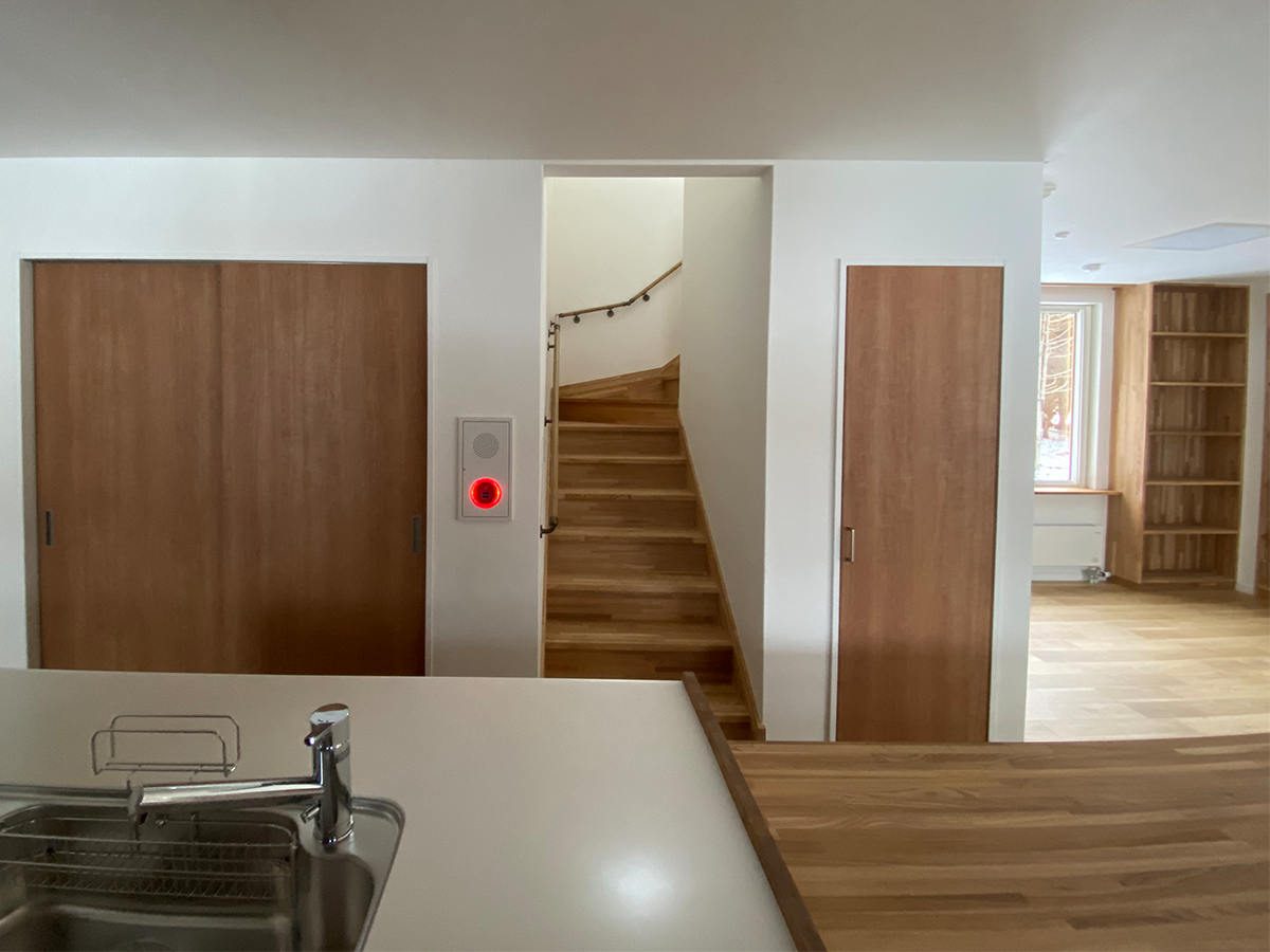 壁は白、床は道産ナラなので特に冬場は外と内がスムーズにつながっている空間となる。