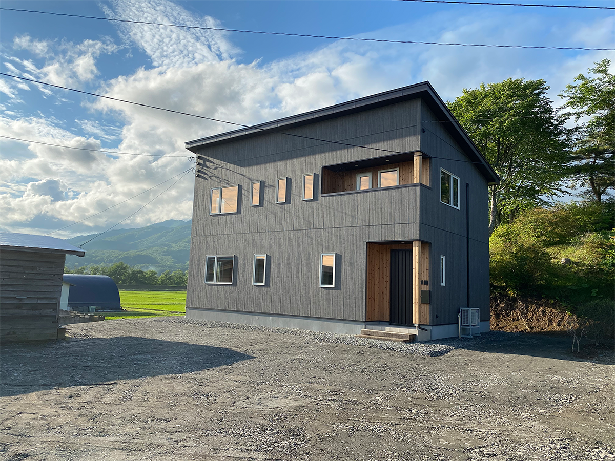 あまり存在が強調されないようにアーシーな色調の木調の外壁としています。